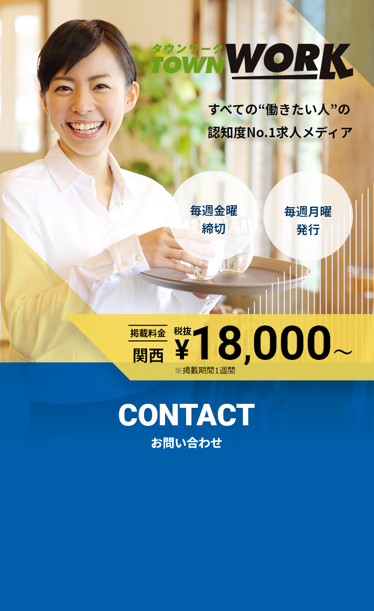 「求人広告といえばタウンワーク」、日本最大級の求人メディアです。